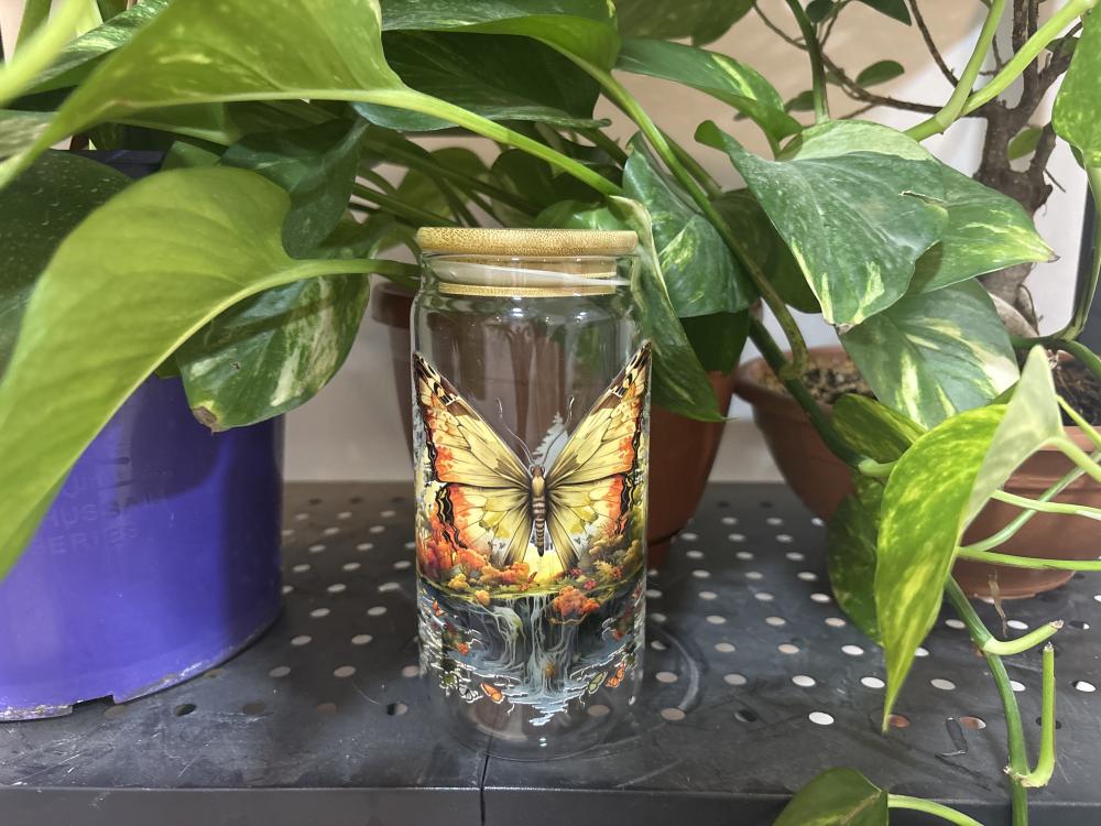 - اللون: فراشة بألوان الخريف الدافئة (بني، أسود، أخضر بتدرجات)